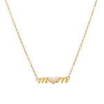 This elegant necklace features the word "mom" adorned with a sparkling heart. Its delicate chain adds a touch of sophistication, making it a heartfelt gift for any occasion. Perfect for Mother's Day or just to celebrate the special bond with your mom.