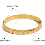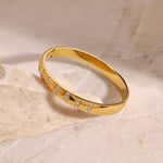 Bring architectural glamour to your wrist with the Mosaic Lattice Cuff. This hinged bangle pairs a sleek 18K gold–plated brass frame with inset rows of sparkling crystals, arranged in a subtle grid pattern that catches light from every angle.