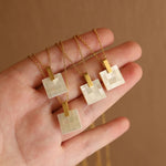 Elevate your style with Aaina by Sanchi's Iridescent Mosaic Pendant Necklace. A shimmering mother-of-pearl pendant and gold accents create the perfect blend of elegance and modernity.