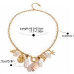 Embrace the enchanting allure of the sea and the adventurous spirit of exploration with our Mystic Charms Necklace. This exquisite piece combines oceanic elements with a touch of wanderlust, featuring delicately crafted seashell, starfish, and boot charms, all elegantly suspended from an 18K gold-plated chain.