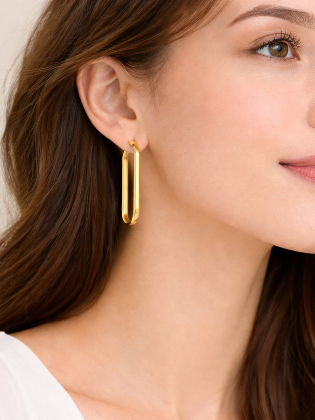 Elevate your everyday look with the Opulent Curve Hoops.  Crafted from surgical steel and luxuriously plated in 18K gold, they are tarnish-resistant, hypoallergenic, and built for lasting shine. Their lightweight feel ensures comfortable wear from day to night, making them the perfect staple for a chic, modern wardrobe.