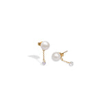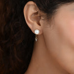 These elegant earrings feature lustrous white pearls gracefully suspended on delicate 18K Gold plated chains, culminating in sparkling crystal drops. Perfect for both formal occasions and everyday wear, they effortlessly add a touch of sophistication to any outfit.