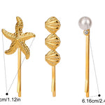 Elevate your style with the Pearl Shore Hair Pins. Crafted from 18k gold-plated, these ocean-inspired pins feature a delicate starfish, textured seashells, and a lustrous pearl accent. Perfect for adding a touch of coastal elegance to your hair, whether for a beachside wedding or a casual day out.