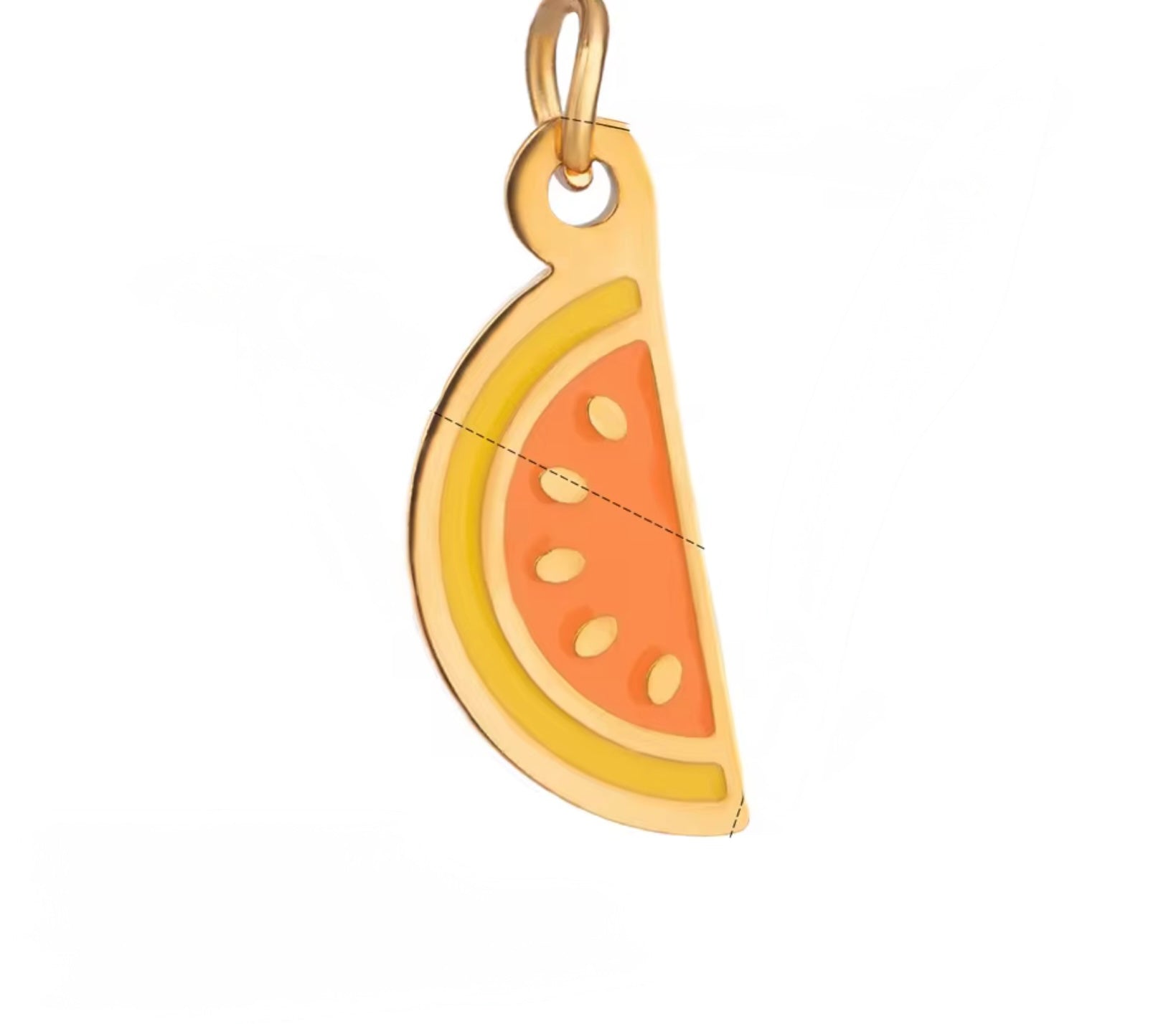 Watermelon charm symbolizes joy, abundance, and summer vibes.