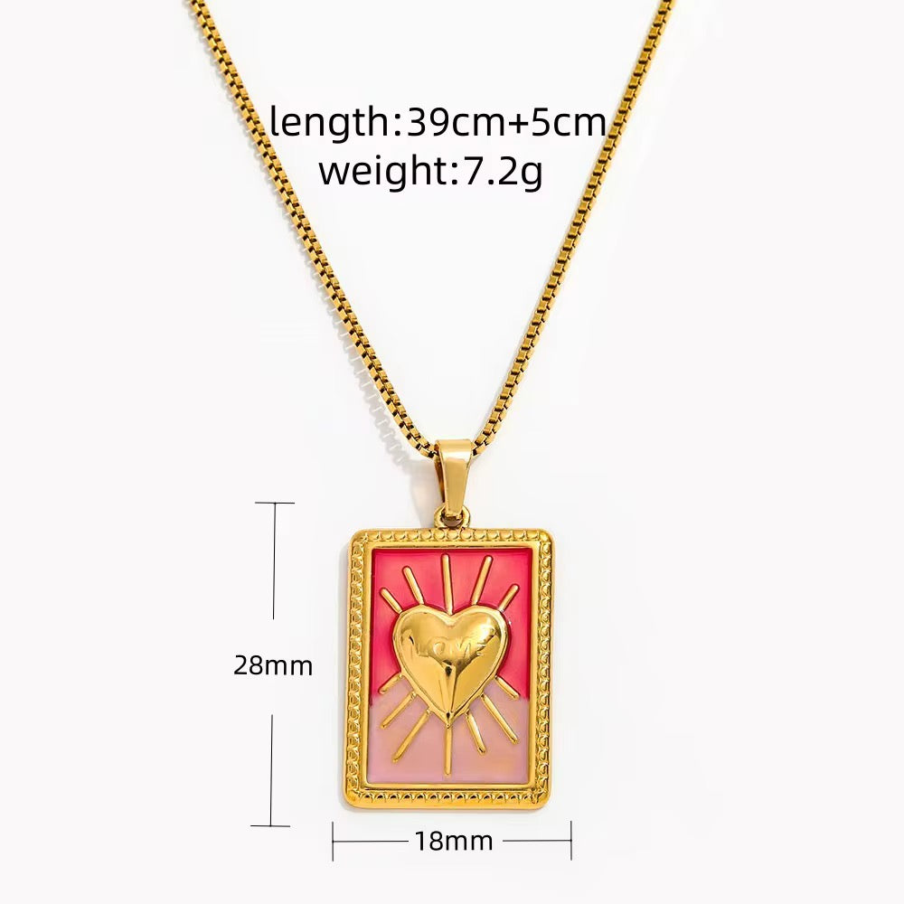 . This captivating piece features a beautifully crafted gold-toned rectangular pendant, adorned with a vibrant pink enamel heart design that radiates warmth and affection. Suspended from a delicate yet durable chain, this necklace offers both style and comfort and waterproof .