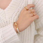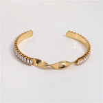 Elevate your jewelry collection with the Regal Twist Diamond Cuff, a stunning blend of luxury and elegance. Crafted with precision, this 18K gold-plated bracelet features a unique twisted design, adorned with a row of dazzling high-quality cubic zirconia stones that mimic the brilliance of real diamonds.