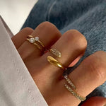 Add a touch of elegance and shimmer with our Twilight Sparkle Wrap Ring. Crafted in luxurious 18k gold plating, this adjustable open-wrap design is encrusted with dazzling high-grade crystals that catch the light from every angle. Whether you're dressing up for a night out or adding glam to your daily look, this ring is the perfect statement of sophistication and shine.