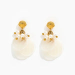 The general style of these types of earrings, featuring shells and pearls, is commonly referred to as "shell drop earrings with pearls" or "mother-of-pearl chandelier earrings". The "modern chick" term appears to be a user-generated query and not a formal product name or style.