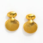 Step into the spotlight with our Golden Seashell Studs, inspired by the timeless beauty of the ocean's treasures. These luxurious earrings feature a radiant scallop design, perfect for adding a touch of golden glamour to any outfit. Crafted for elegance and versatility, they are a must-have for those who cherish unique, high-quality jewelry.