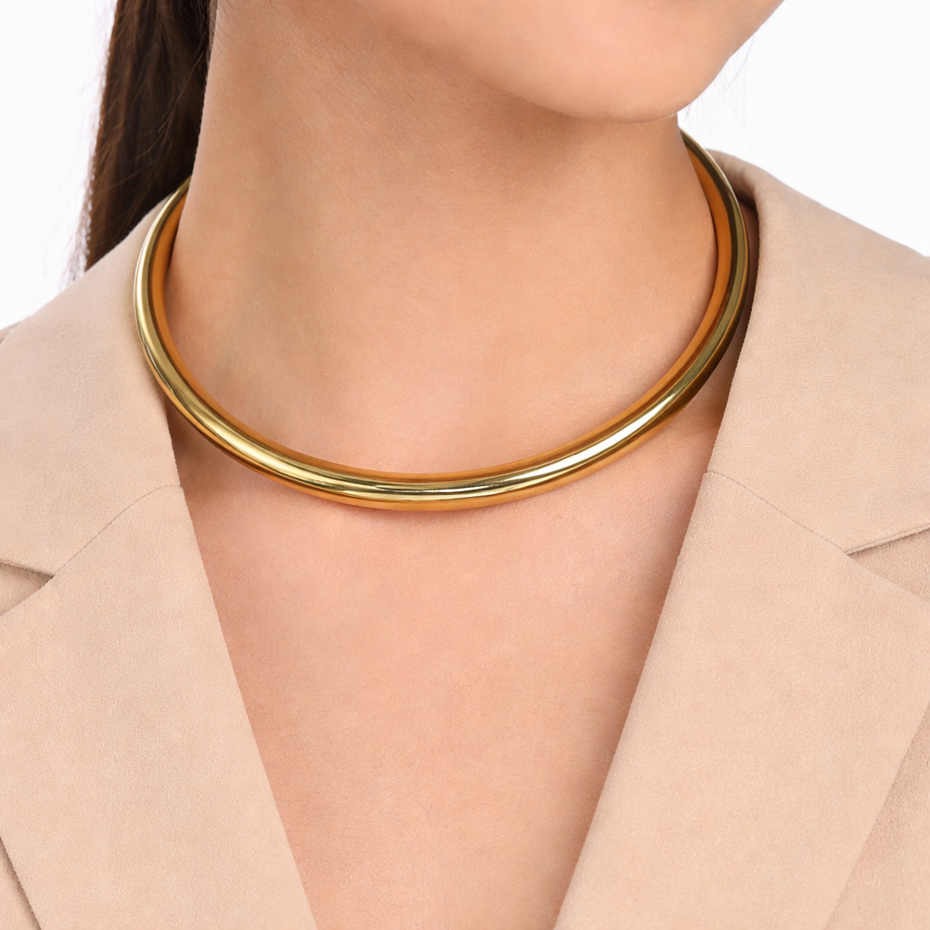 This elegant 18K Gold plated necklace showcases a bold design with a smooth finish, perfect for adding a touch of sophistication to any outfit. Its versatile style makes it an ideal accessory for both formal occasions and parties, allowing you to elevate your look effortlessly.