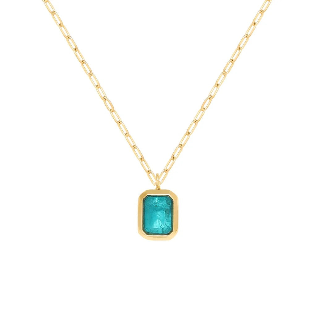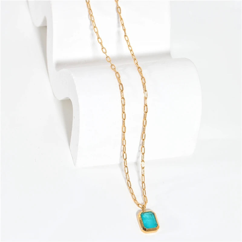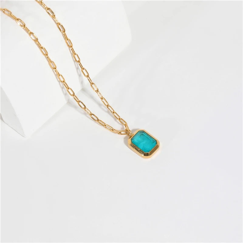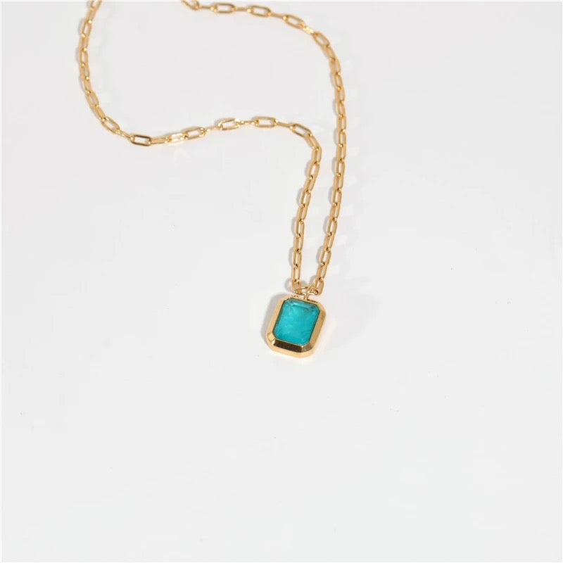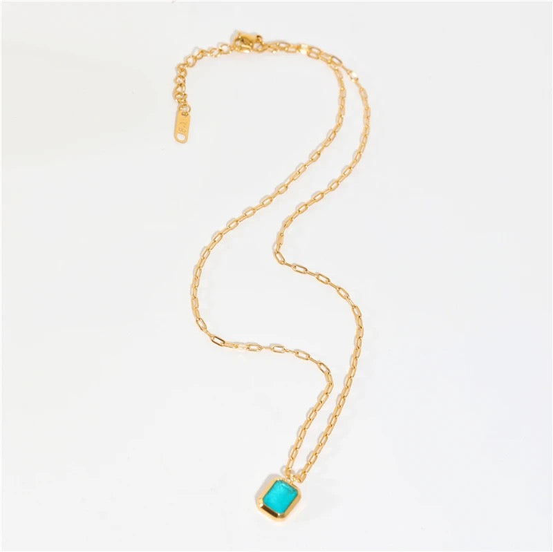 Embrace effortless elegance Turquoise Gem Pendant Necklace. A radiant turquoise gemstone on a sleek gold chain, perfect for a timeless look.