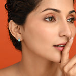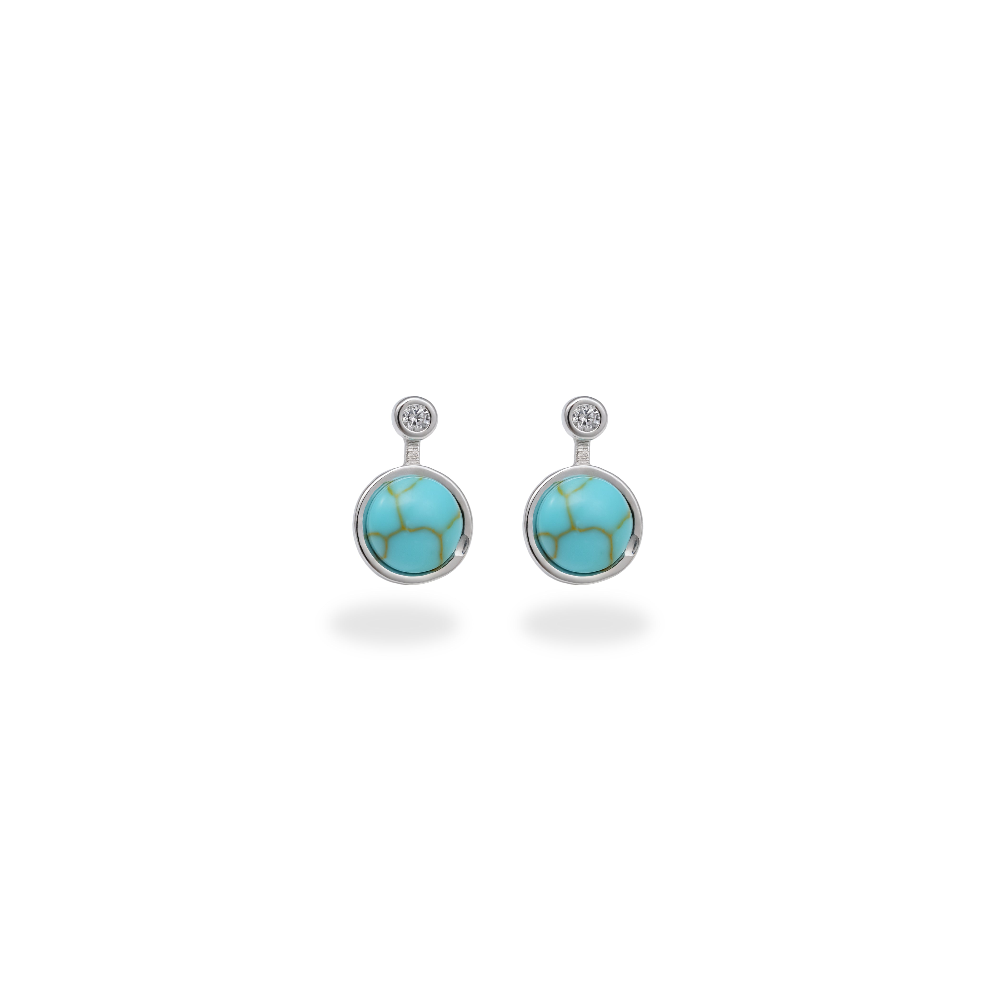 These elegant earrings feature vibrant turquoise stones accented with delicate crackle patterns, set in a polished 925 sterling silver setting. Each earring is topped with a sparkling clear gemstone for added brilliance. Perfect for adding a pop of color to both casual outfits and more formal ensembles.