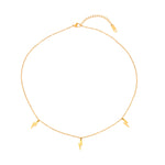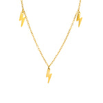 This stunning 18K Gold plated necklace features dynamic lightning bolt charms, perfect for adding a bold touch to any outfit. The delicate chain exudes elegance while showcasing a playful design, making it a versatile accessory. Ideal for casual outings or to elevate a party look, this piece guarantees to turn heads.