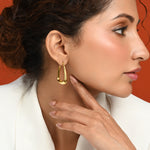 These elegant hoop earrings feature a contemporary V-shaped design, crafted in high-polished 18K Gold plated for a sleek finish. Their lightweight construction ensures comfort, making them perfect for everyday wear or special occasions.